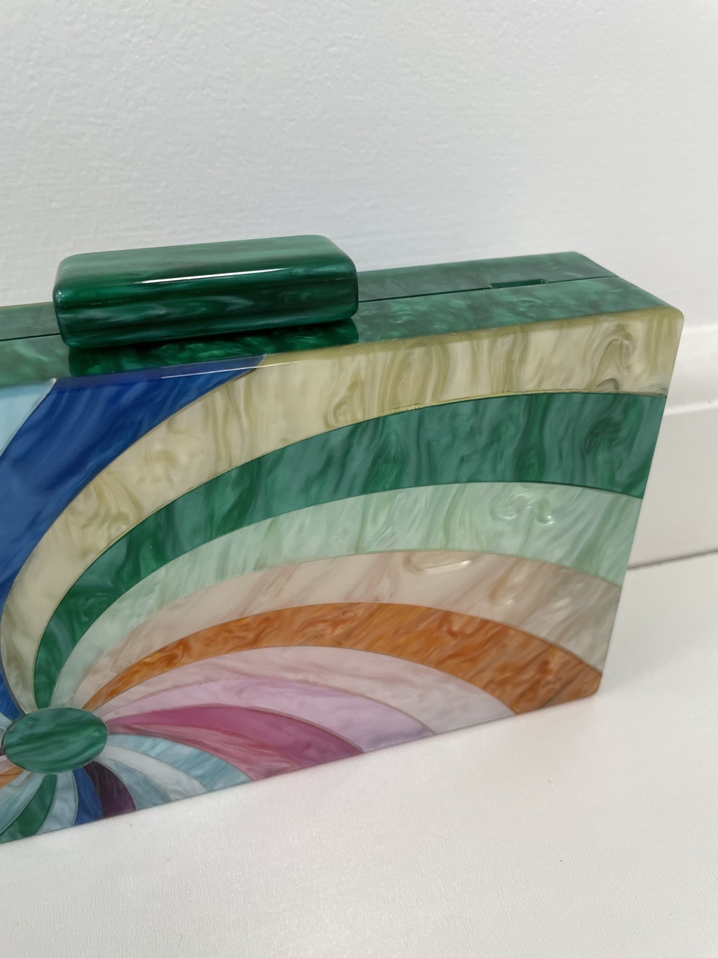 Bolsa Festa Clutch Acrilico Colorida, design diferenciado, modelo sofisticado, espaçosa, perfeita para ocasiões durante o dia ou à noite, fecho em imã, forrada internamente, acompanha alça de metal dourada removível. Cabe iphone? sim, esse modelo de Clutch cabe todos os modelos de celulares, iphone pro max e plus.