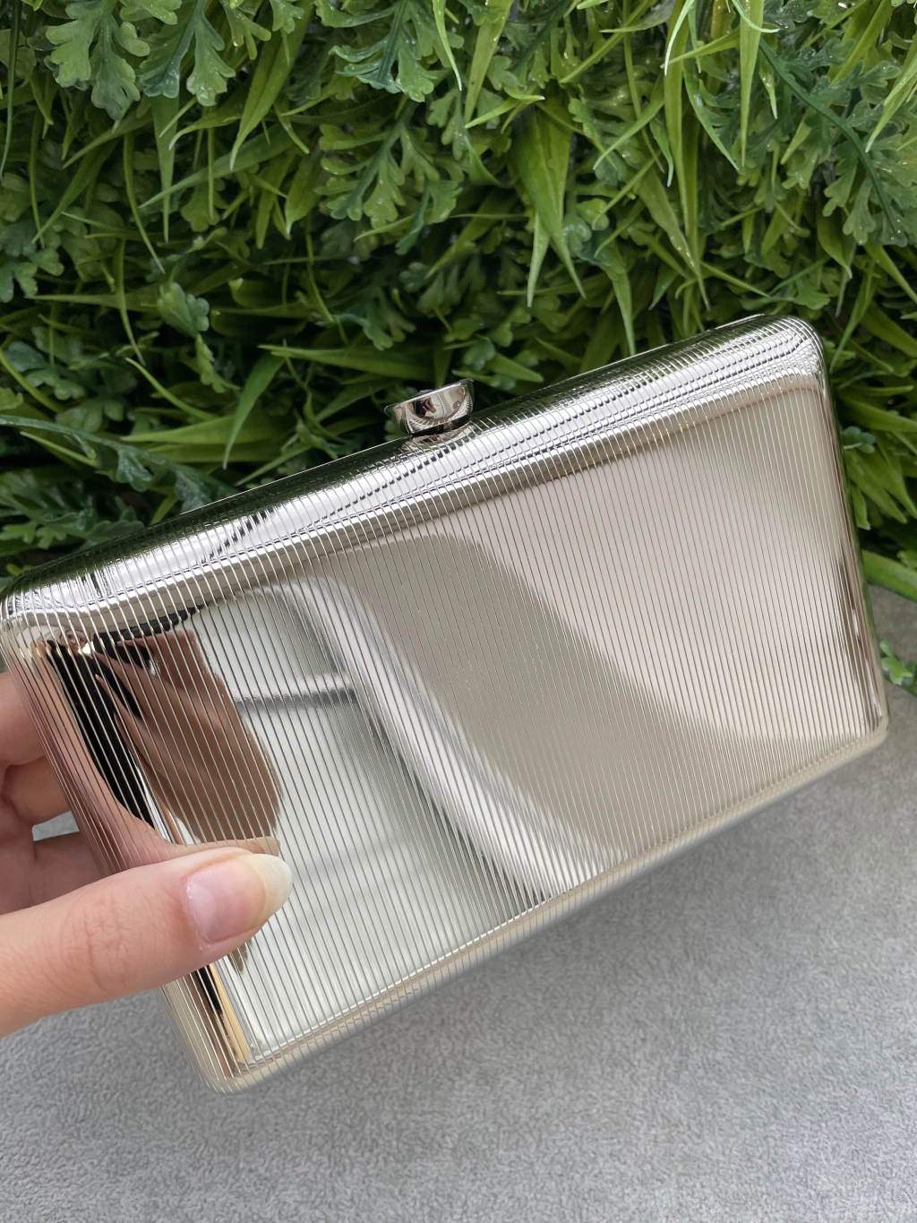Bolsa Festa Clutch em metal prata, modelo elegante, versátil que pode ser usado no look casual ou festa, possui fecho de encaixe, forrada internamente, acompanha alça longa de corrente na cor prata removível. Cabe iphone? sim, esse modelo de Clutch cabe todos os modelos de celulares, iphone pro max e plus também.